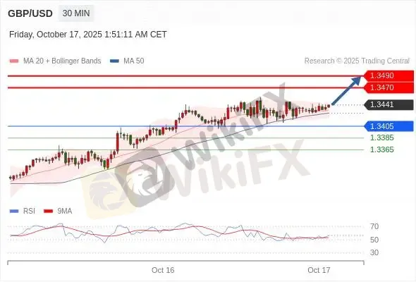 交易策略: 在1.3405之上,看涨,目标价位为1.3470,然后为1.3490。