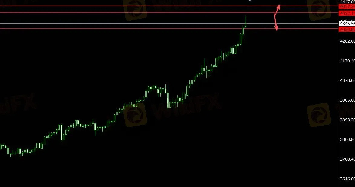 美元指数承压,黄金创新高。关注支撑位4320.80,4小时看多至4427.40,关注压力位4397.10,4小时看空至4257.80。