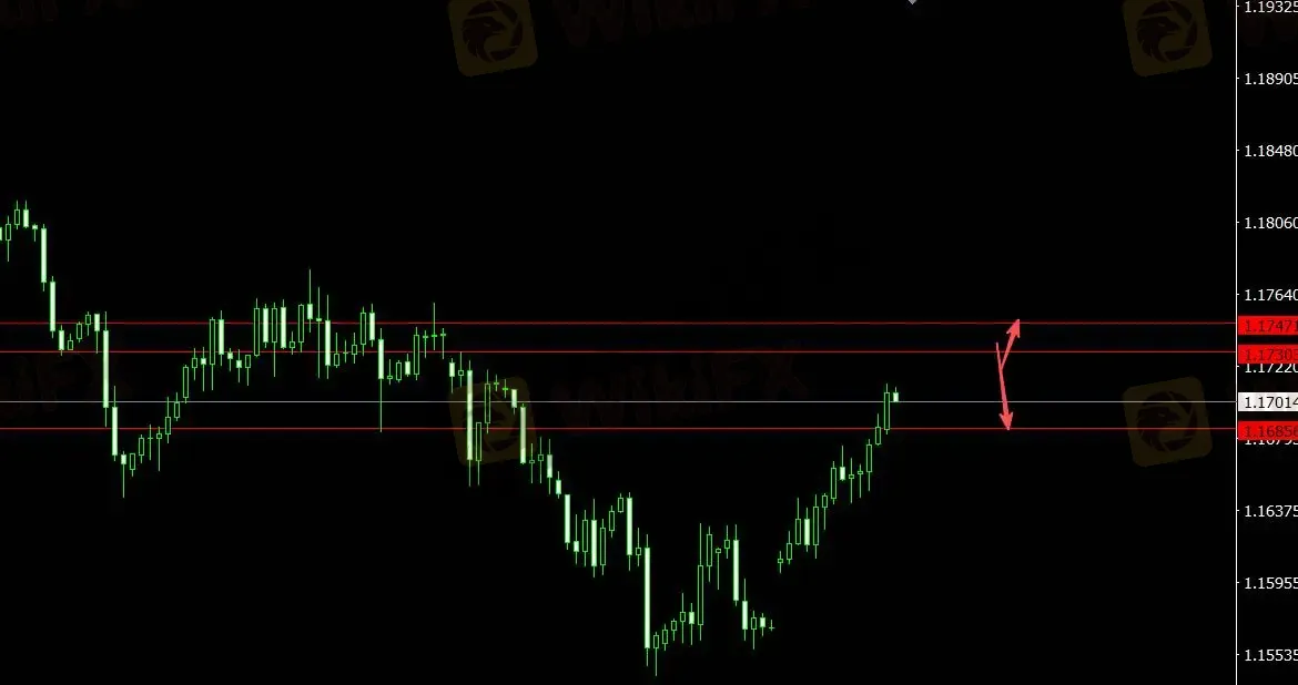 美元指数承压,欧元反弹受阻。关注支撑位1.16850,4小时看多至1.17470;关注压力位1.17300,4小时看空至1.16710。