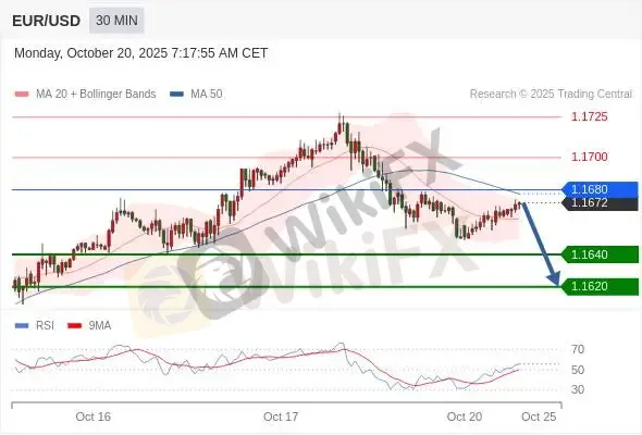交易策略: 在1.1680之下,看跌,目标价位为1.1640,然后为1.1620。
