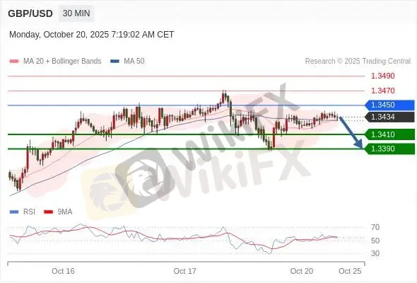 交易策略: 在1.3450之下,看跌,目标价位为1.3410,然后为1.3390。
