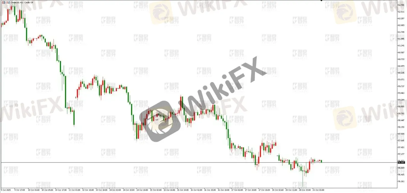 日线收阴线,价格一路下行,上涨迹象不明显。1小时级别,价格在60/120日均线下方运行,市场延续下降趋势,MACD显示下降动能逐步减弱。日内关注下方55.10美元一线的支撑,上方关注57.20美元一线的压力,关注价格创新低的力度。