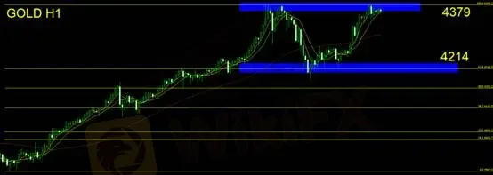 黄金走势反转向上,连续上破3个费波纳契阻力位,一举回到前高4379一带测试前高压力位。操作面昨日分批布局建议应已触发止损,投资人出场观望后应留意重新空回来的机会。我们仍认为当前黄金价格于技术面乖离扩大,仍有望进行涨幅收敛,日内操作重点应于高位4379一带进行空方操作,倘若持续创下新高,应需进行止损且观望。