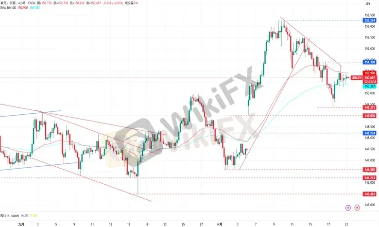 摘要:美元/日币(USDJPY):新闻事件:周一,美元/日元上涨至150.736日元。日本自民与维新将组成联合政府,带动高市早苗有望成为日本首位女首相。投资人预计高市若当选首相将推出大规模财政支出计划以刺激经济,并对日元造成压力。另一方面,日本央行审议委员高田创表示,日本经济已经承受来自美国关税的冲击,并且很可能已经实现百分之2的通膨目标,并重申目前是升息的适当时机,此前高田在9月曾投票反对维持利率不变