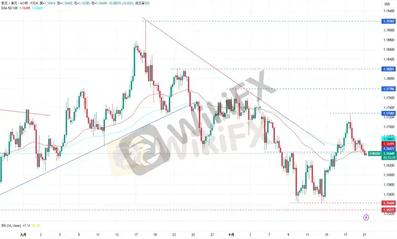 CPT Markets分析师指出,欧元/美元自1.17283回落,并跌破了EMA50所在的价格水平,试图重启自1.19187水平开始的下跌趋势。下跌方面,欧元/美元目前的支撑为1.1600水平,再来是10月9日的低点1.15420。上涨方面,欧元/美元目前的阻力为10月17日的高点1.17283,再来是10月1日的高点1.17752。