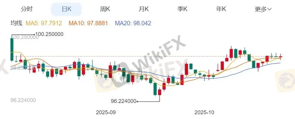 10月24日,美国9月消费者价格指数(CPI)数据低于预期,美元指数上涨。衡量美元对六种主要货币的美元指数当天涨幅为0.02%,汇市尾市收于98.953。