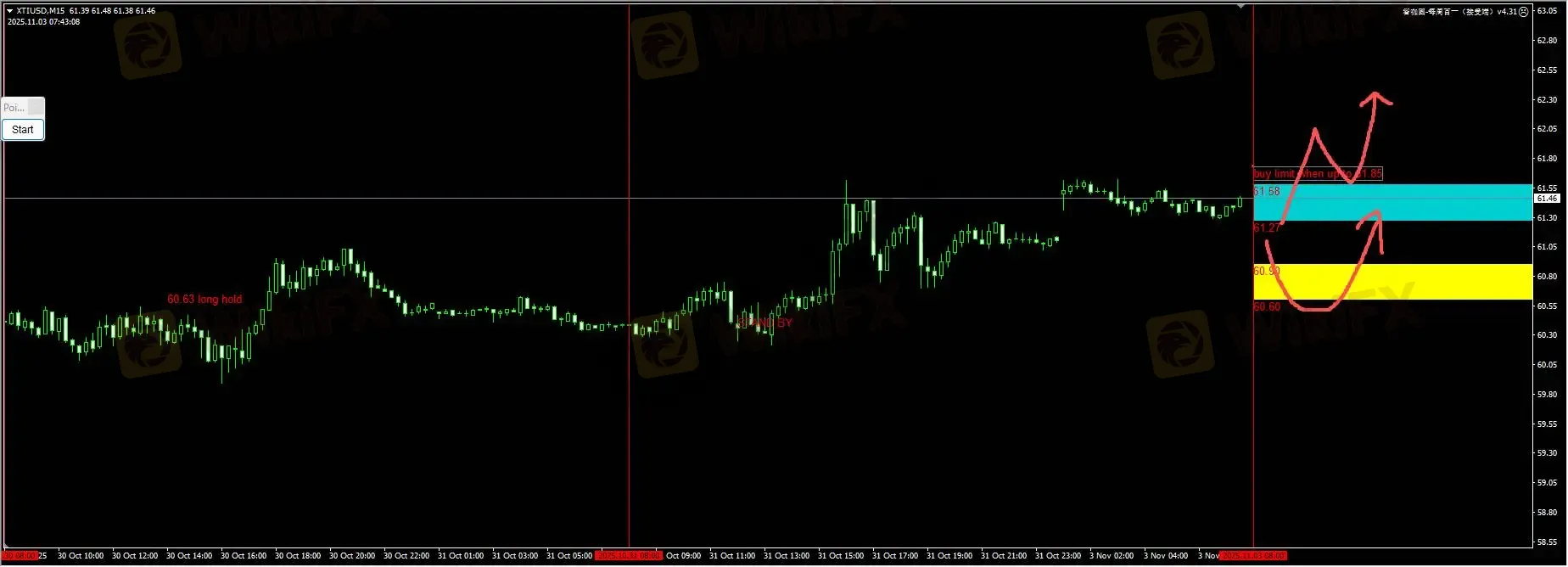 原油:OPEC会议传出利好消息,增产幅度小于预期,且明年一季度暂停增产。日内继续以关注多头信号为主。蓝色为突破回踩买入,黄色为扫荡下方流动性之后的买入。详细位置请咨询插件。