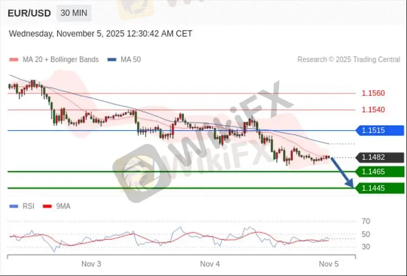 交易策略: 在1.1515之下,看跌,目标价位为1.1465,然后为1.1445。