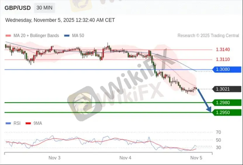交易策略: 在1.3080之下,看跌,目标价位为1.2980,然后为1.2950。