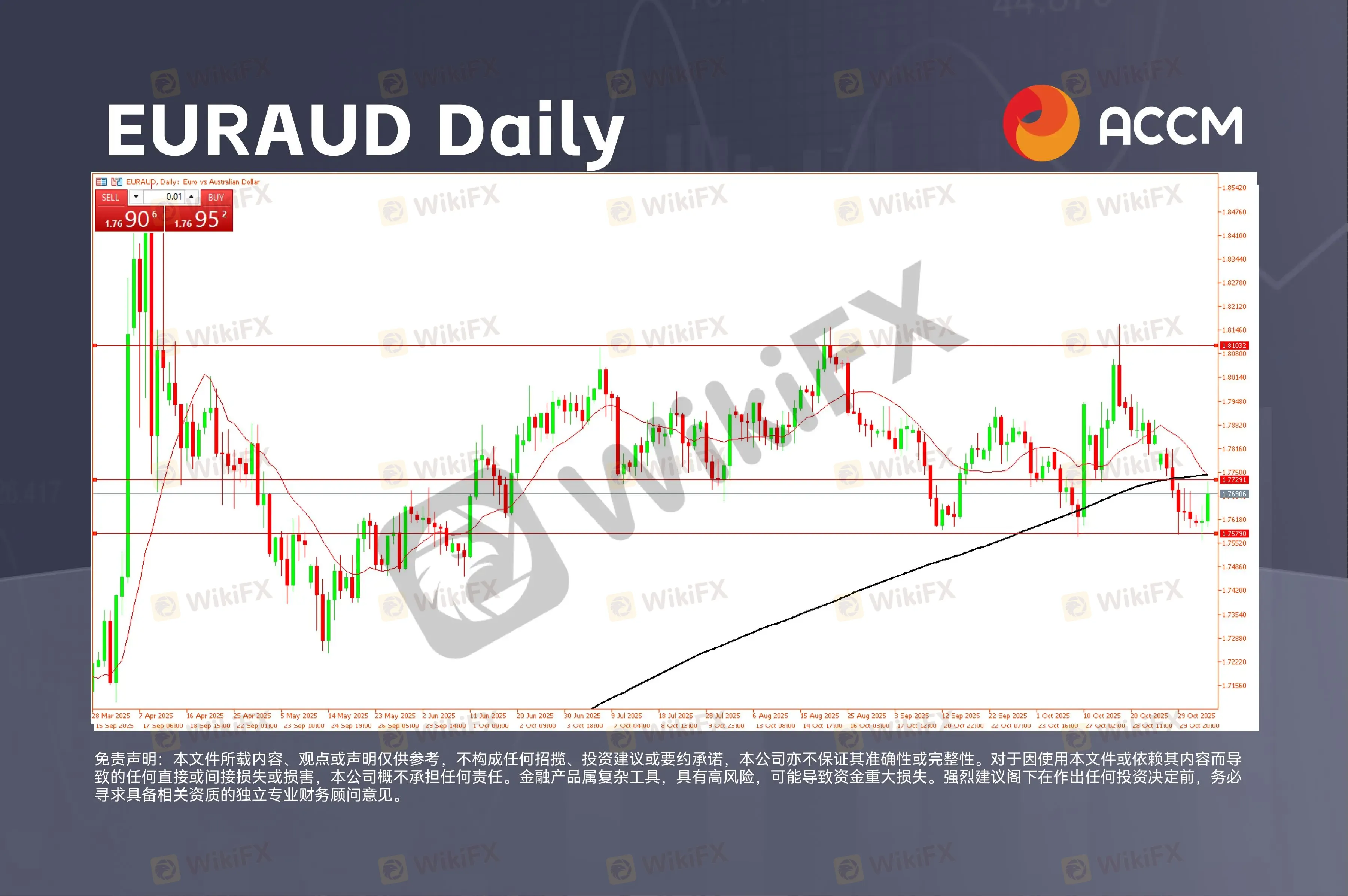 与此同时,欧元兑澳元(EURAUD)在上升趋势线与1.76关口处获得支撑,形成“三重底”形态。此外,RSI指标仍处于超卖区间,暗示短线反弹的可能。但价格上方的200日均线与1.7750枢轴点重合,预计将成为重要阻力位。