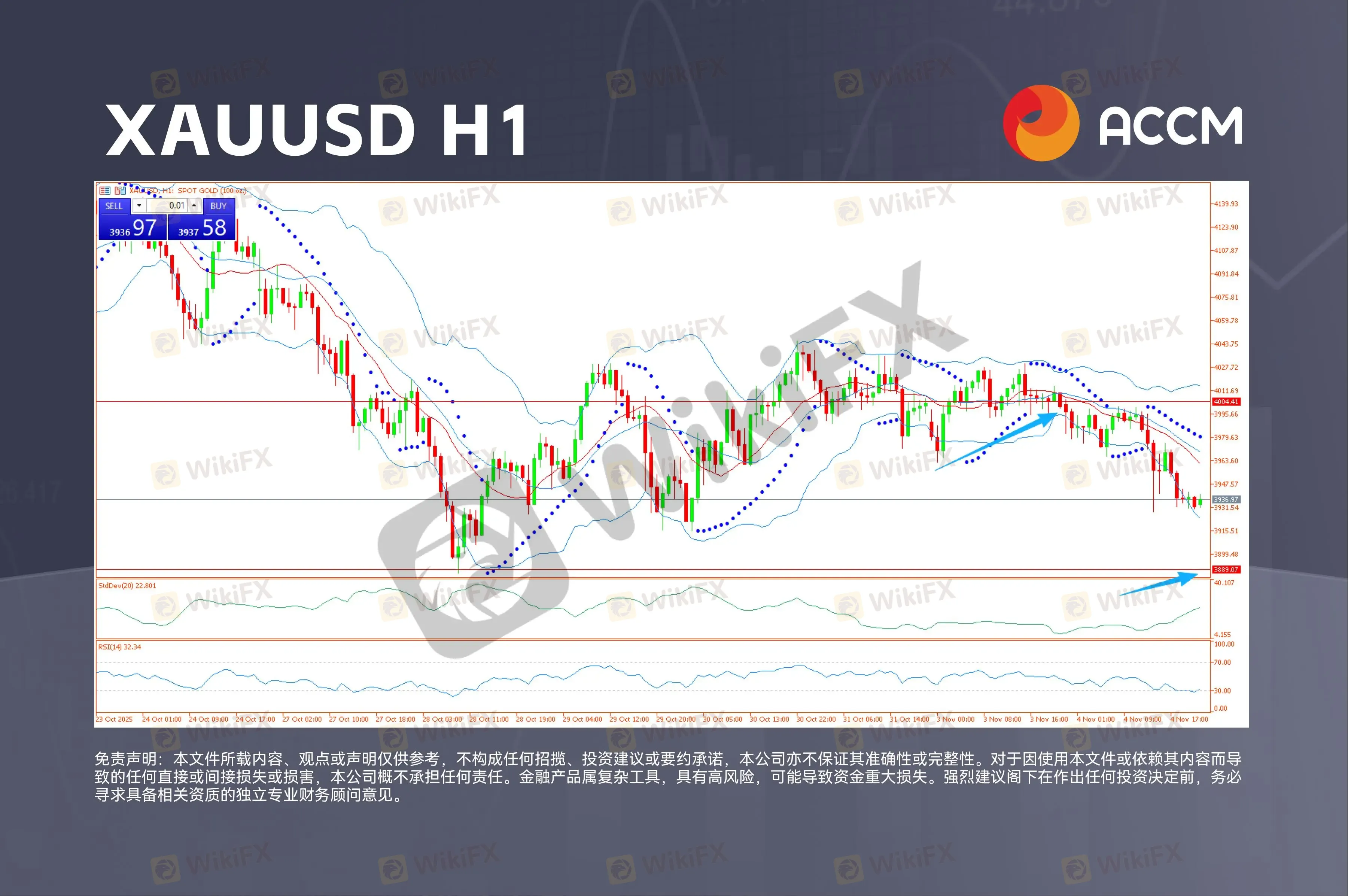从技术面看,金价在4000美元关口及下降趋势线附近受阻后,空头动能明显增强。若价格继续下行,短期支撑可能出现在前期低点3900美元一带。