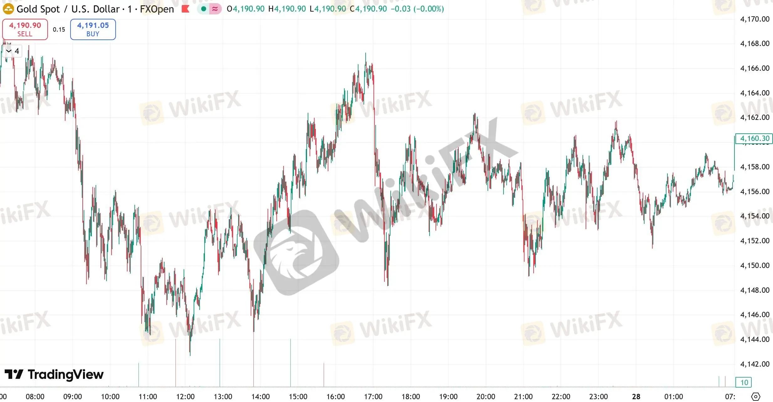 现货黄金周四小幅走低,从上一交易日创下的近两周高点回落。现货黄金下跌近 0.16%,报收4157.22 美元/盎司;