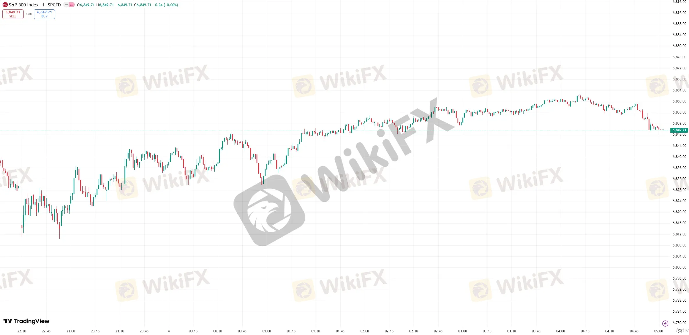标普 500 指数涨 20.58 点,涨幅为 0.30%,报 6849.95 点