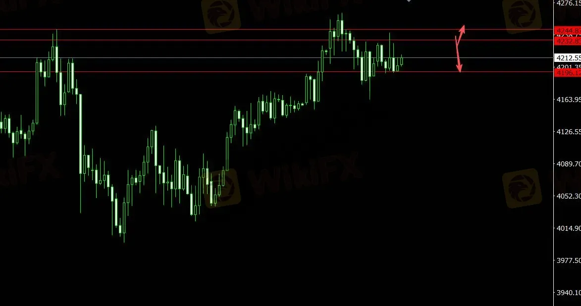 美元指数承压,黄金受支撑。关注支撑位4196.10,4小时看多至4244.90,关注压力位4232.80,4小时看空至4182.10。