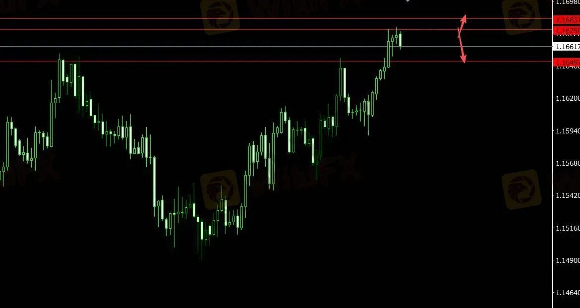 美元指数承压,欧元反弹受阻。关注支撑位1.16490,4小时看多至1.16840;关注压力位1.16750,4小时看空至1.16370。