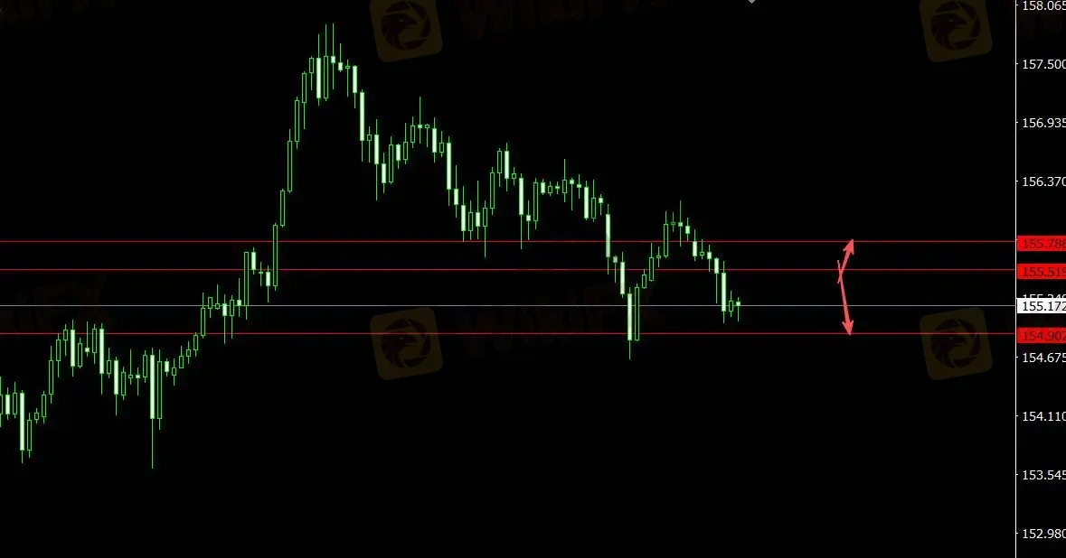 美元指数承压,日元下跌,关注支撑位154.900,4小时看多至156.790;关注压力位155.520,4小时看空至154.720。