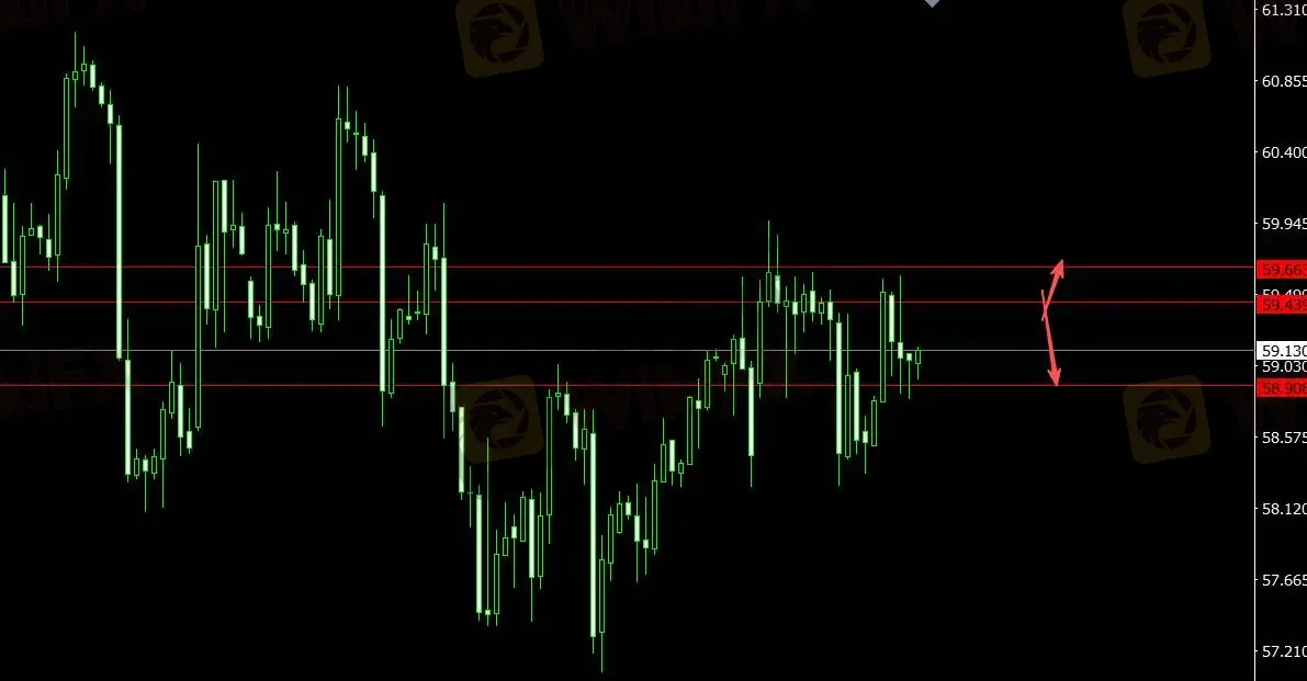 美元指数承压,原油受支撑,关注支撑位58.910,4小时看多至59.660;关注压力位59.440,4小时看空至58.650。