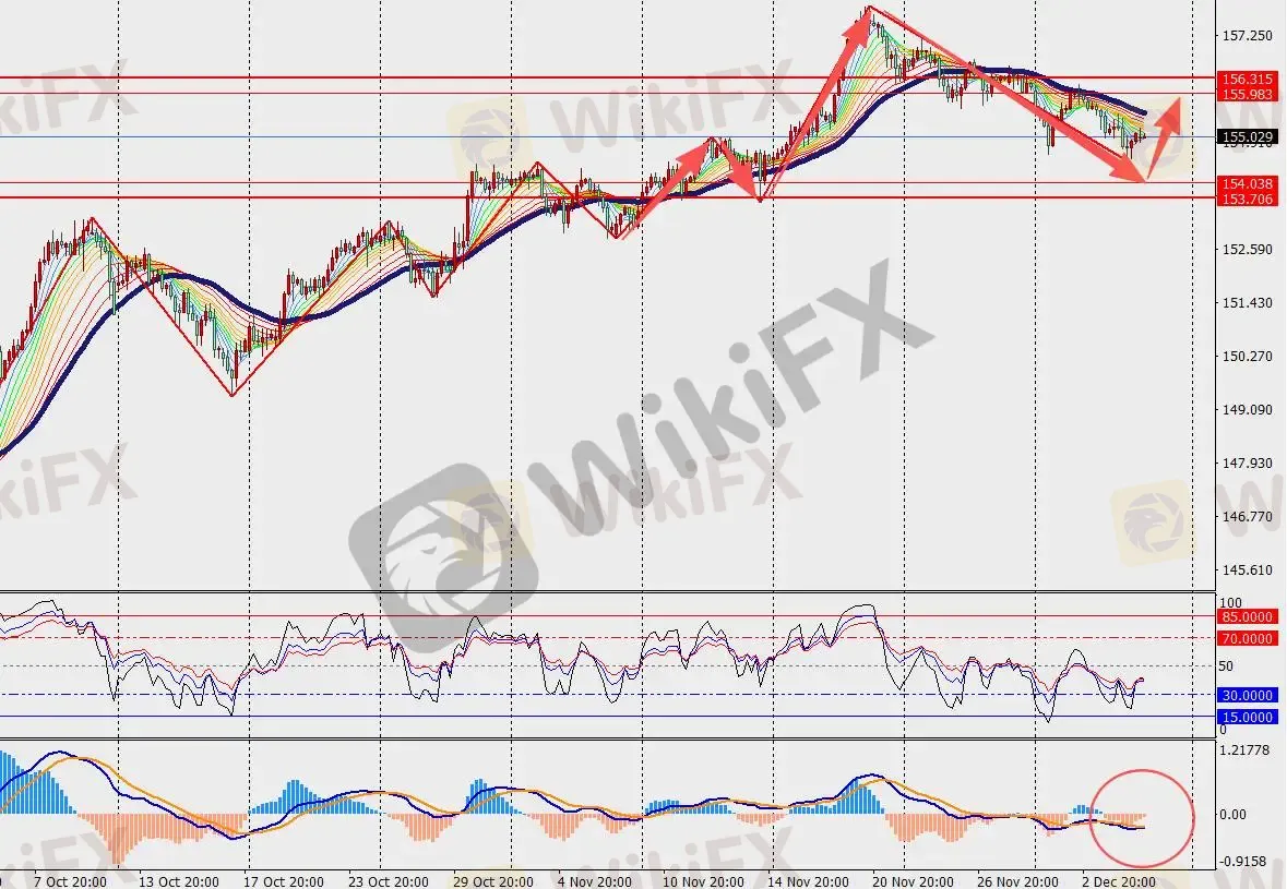 技术面:美元兑日元H4级别下跌反弹,但依旧在48日多空分界线下方运行。另一方面,MACD双线和量能柱在零轴下方底背离收敛。数据显示,投资者对日本央行在12月18-19日政策会议上加息25个基点至0.75%的概率预期,已飙升至91.5%以上。