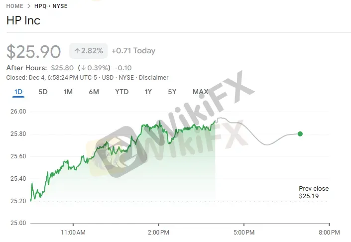 12 月 4 日至 5 日,惠普公司 (HPQ) 公布第四季度财报,营收同比增长 14.7% 至 97 亿美元,低于市场预期的 99 亿美元;每股盈余 (EPS) 为 0.62 美元,高于市场预期的 0.58 美元。