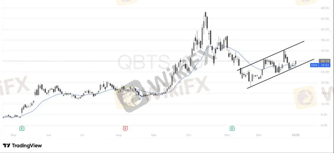 QBTS 当前的技术结构维持良性。股价在回踩上升趋势通道下沿的关键支撑区域后出现明显企稳反弹,且反弹过程中成交量有所放大,显示该位置存在较为明确的多头承接力量。与此同时,近期震荡区间的低点呈现逐步抬升态势,表明市场在回调中不断提高接受价格,中期上升通道结构仍然完整,趋势尚未遭到实质性破坏。