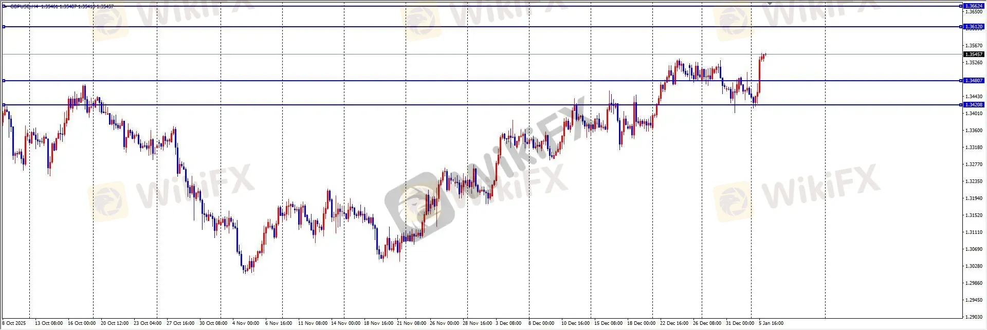 周一,英镑兑美元于 1.3414 附近获支撑后反弹上涨,最高触及 1.3548,全天波幅约 135 点,日线收阳。英国信贷数据稳健提供支撑,但避险情绪及美国数据疲软共同影响价格走势。