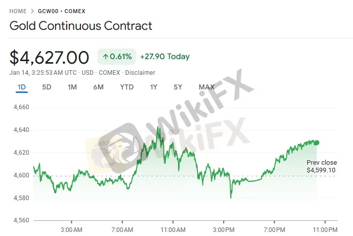 周二(1 月 13 日)纽约尾盘,现货黄金小幅收低 0.19%,报每盎司 4,588.82 美元。北京时间 21:30 美国公布 CPI 通胀数据前,金价一度跌破 4,580 美元,随后快速反弹,于 22:50 升至 4,634.55 美元,创下历史新高。此后,金价震荡回落,至凌晨 4:35 刷新日低,逼近 4,570 美元。