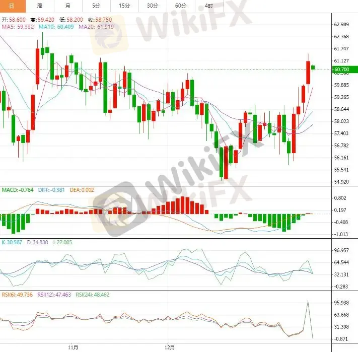 周三亚盘时段,西德克萨斯中质原油(WTI)价格交投于每桶 60.70 美元附近,刷新近两个月高位。油价此轮反弹的主要动力,源于中东地缘局势再度紧张,市场对潜在供应中断风险的担忧明显升温。