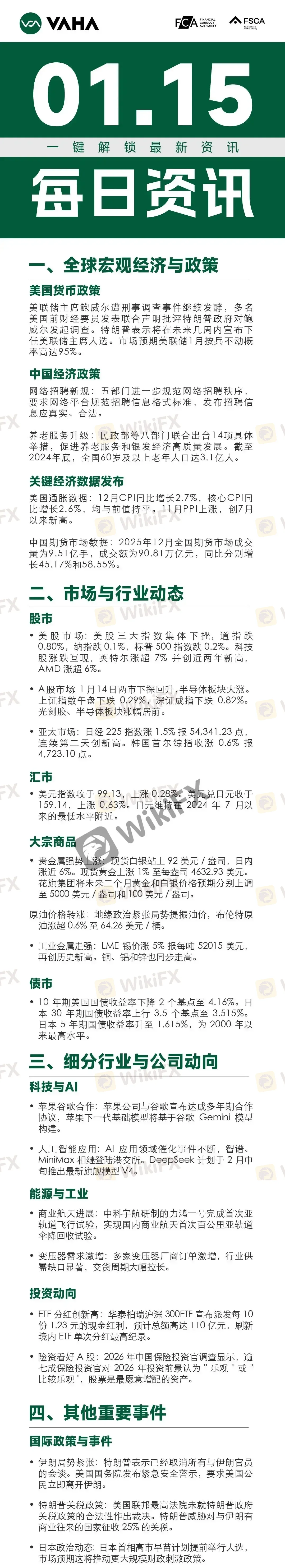 Vaha每日财经资讯(1.15)