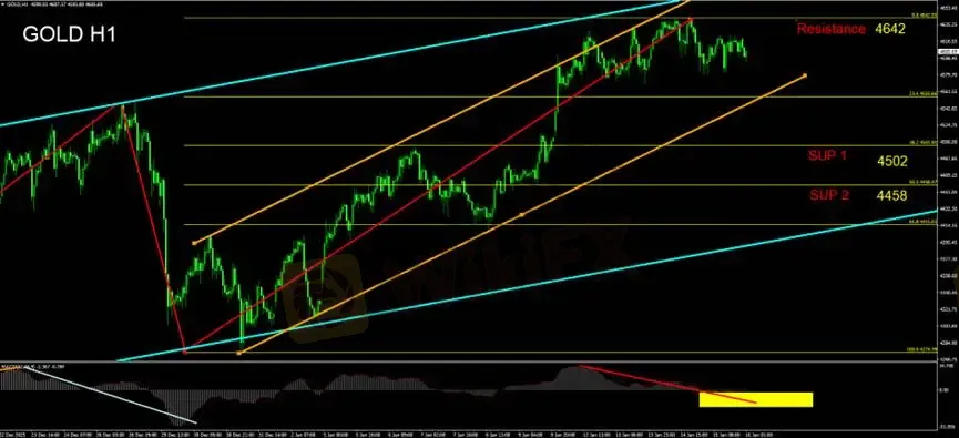 同昨日分析,技术面黄金以满足费波纳契延伸波1.618目标价4642美元/盎司,我们认定当前4642为短线天花板。