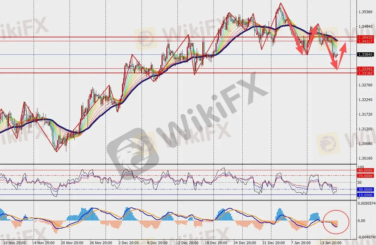 第一阻力位:1.3440 第一支撑位:1.3330