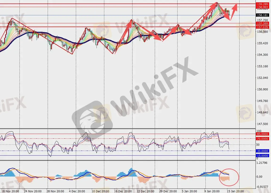 第一阻力位:159.00 第一支撑位:157.50