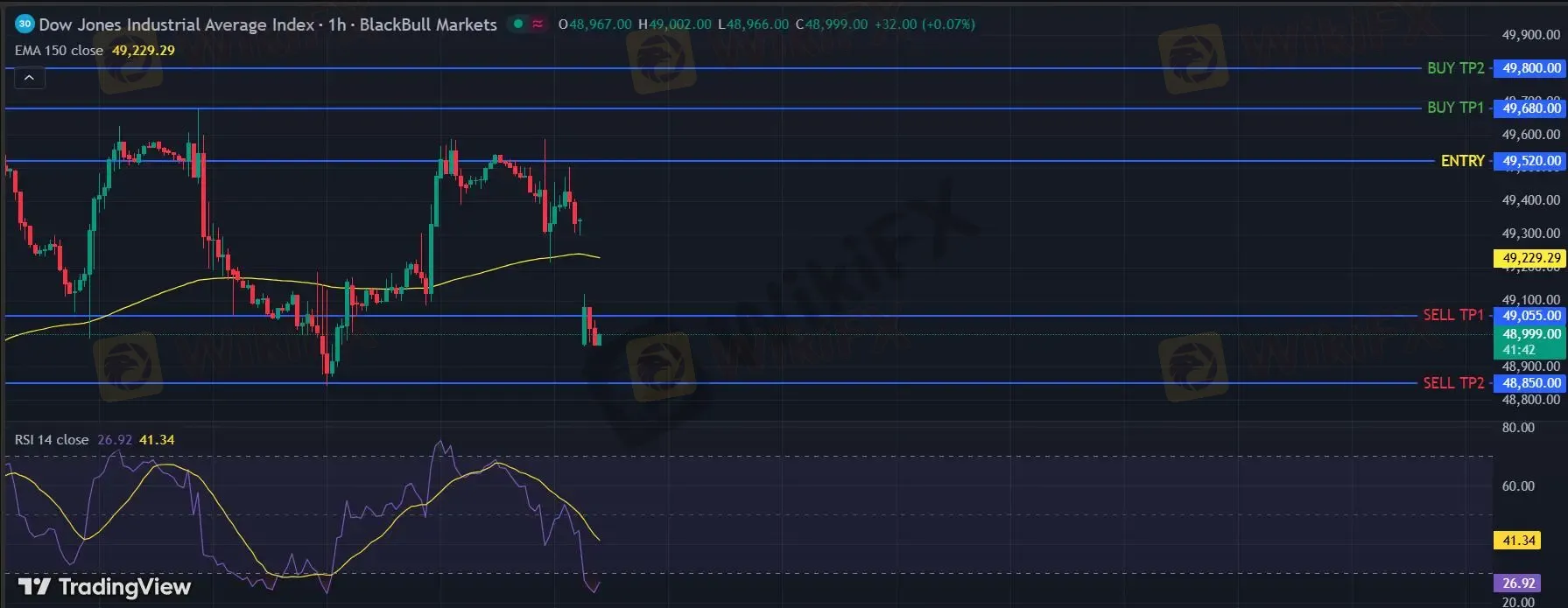 在 49520 之下,看跌,目标价位为 49055 ,然后为 48850 。