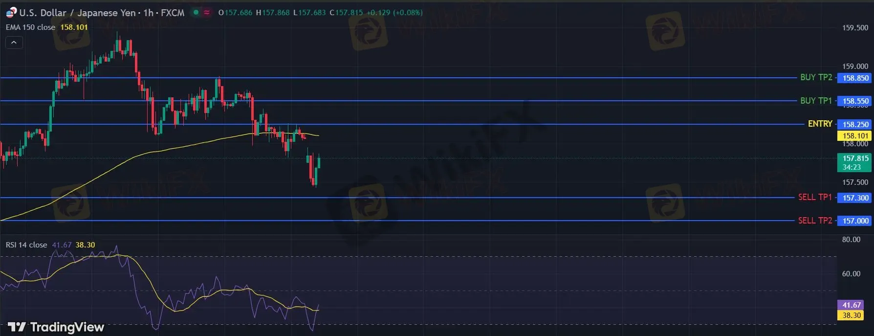 在 158.25 之下,看跌,目标价位为 157.30 ,然后为 157.00 。