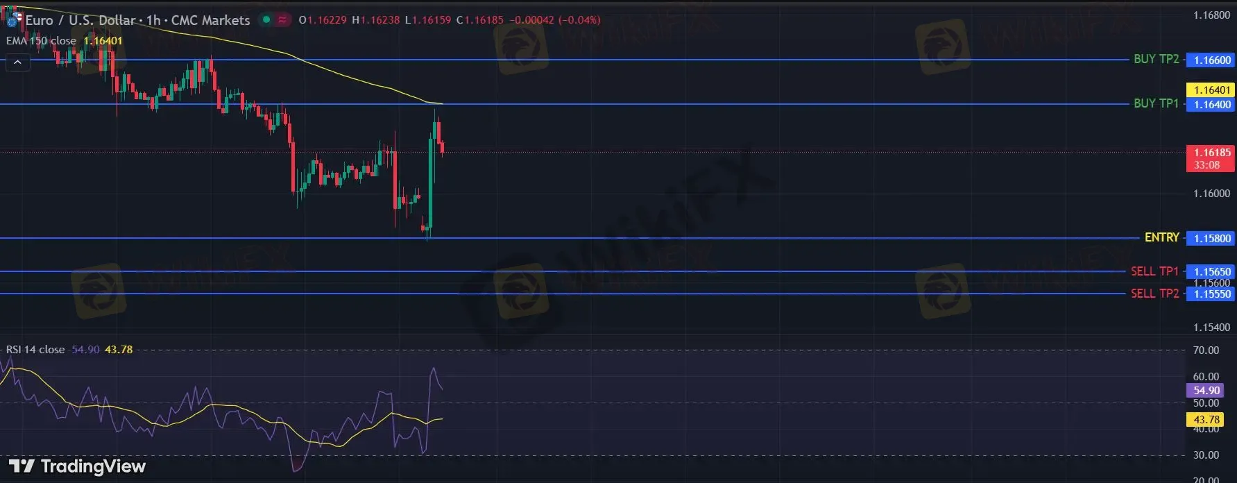在 1.1580 下,看空,目标价位定在 1.1565 ,然后为 1.1550。