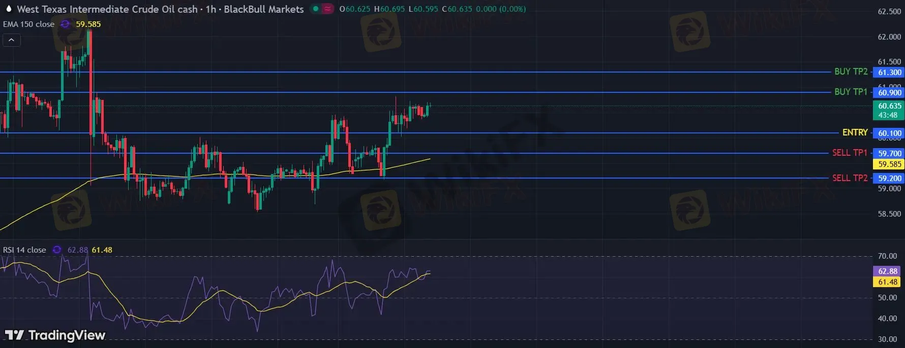 在 60.10 下,看空,目标价位定在 59.70 ,然后为 59.20。