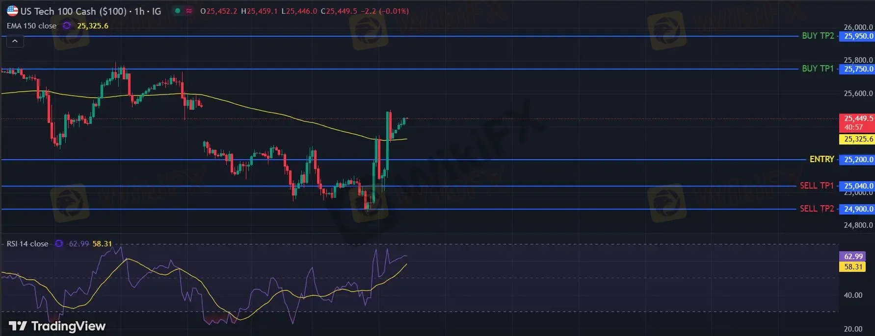在 25200 之上,看涨,目标价位为 25750 ,然后为 25950 。