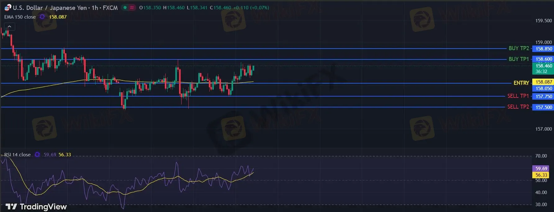 在 158.05 下,看空,目标价位定在 157.75 ,然后为 157.50。