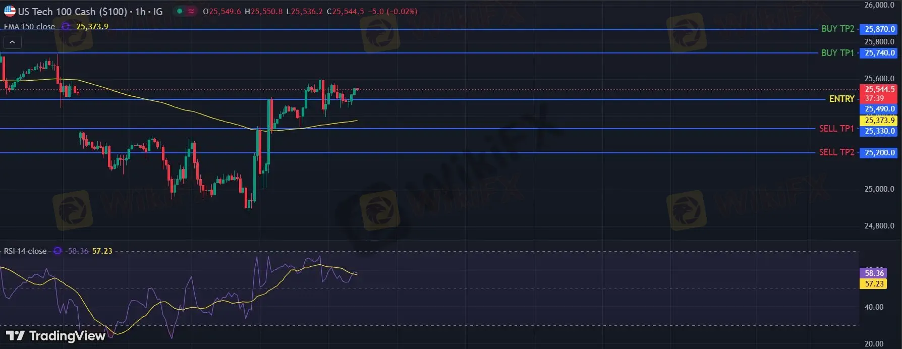在 25490 之上,看涨,目标价位为 25740 ,然后为 25870 。