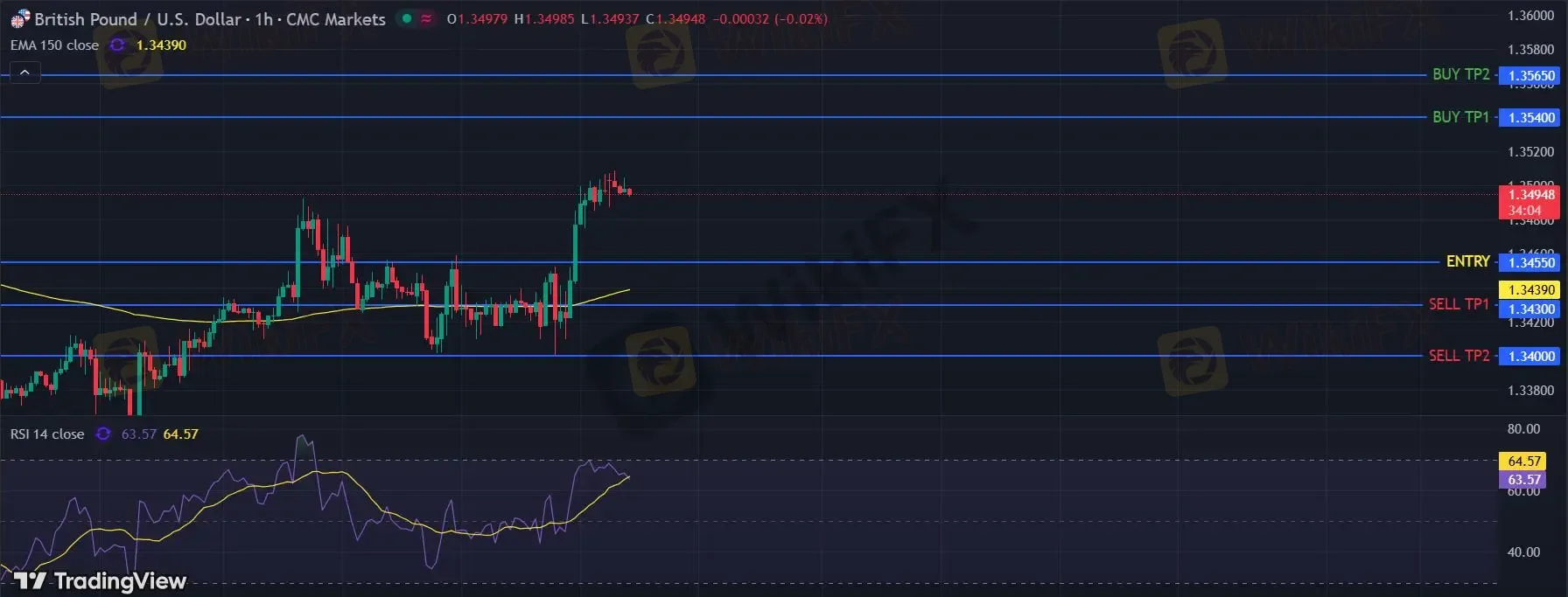 在 1.3455 下,看空,目标价位定在 1.3430 ,然后为 1.3400。