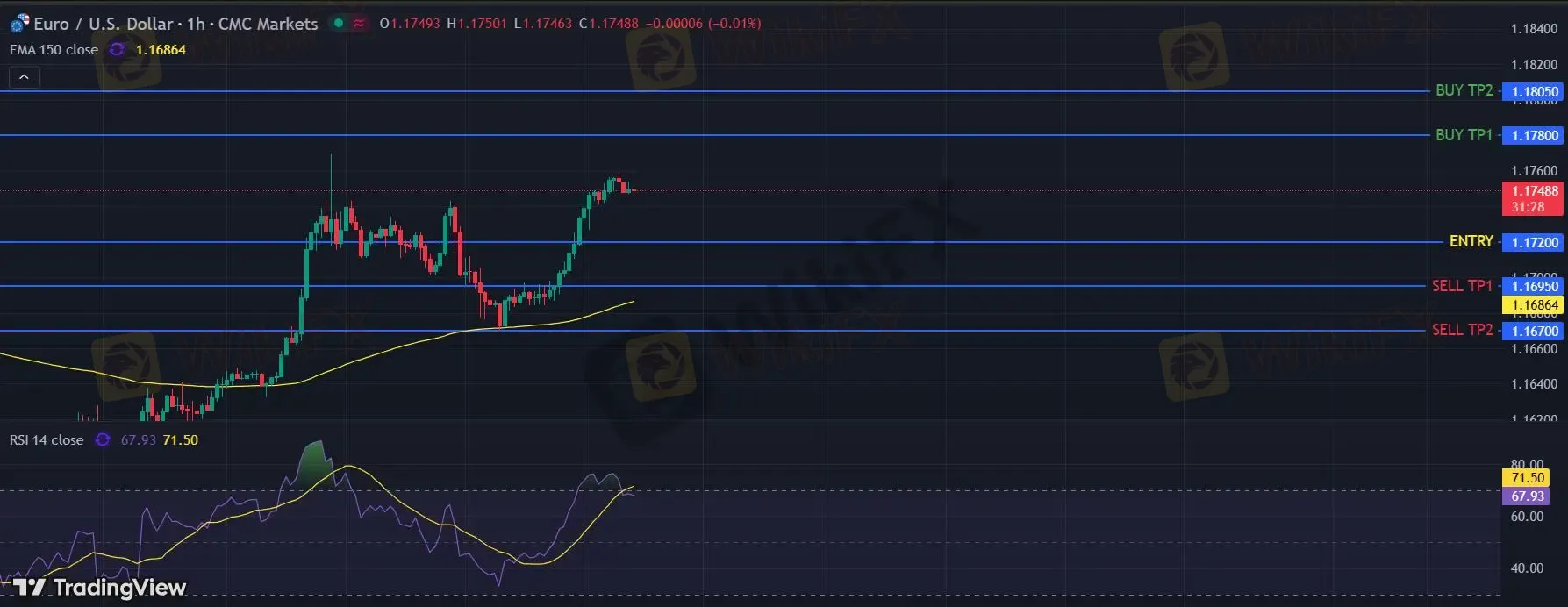 在 1.1720 下,看空,目标价位定在 1.1695 ,然后为 1.1670。