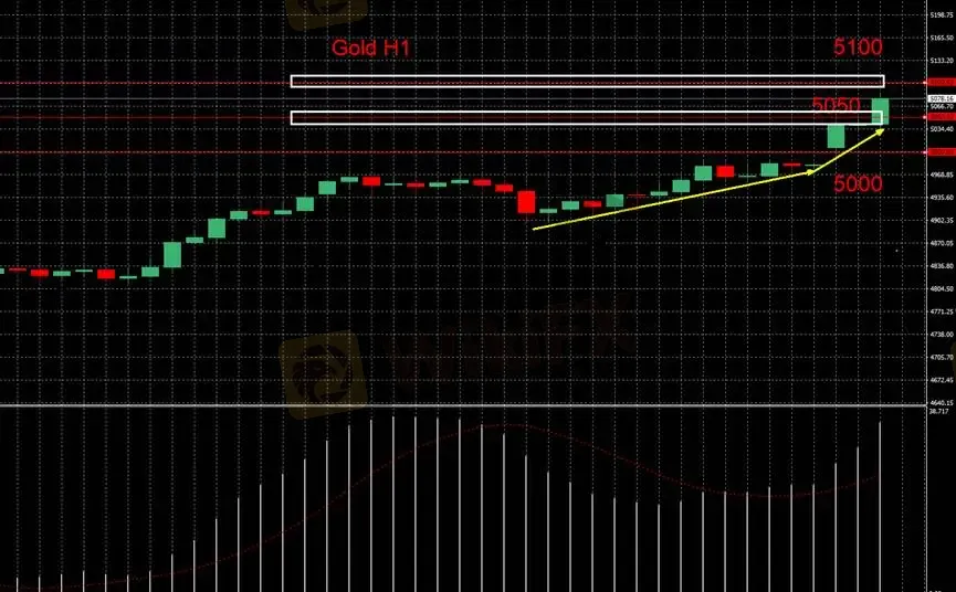 在撰写的这个当下,黄金已突破到5070的关卡,接下来将有可能继续挑战5100,主要还是由于特朗普与伊朗之间的谈判危机,而导致市场恐慌促使这次的金价来到新高点,后续的走势需要密切关注政治局势,去进行相应操作。