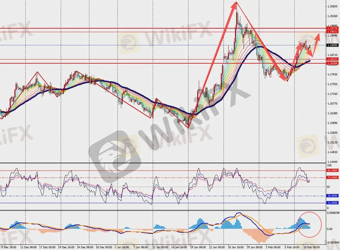 技术面:澳元兑美元H4级别持续上涨,并在48日多空分界线上方运行。另一方面,MACD双线和量能柱开始在零轴附近扩张。消费者信心走弱并不意味着澳洲联储会立刻转向宽松。该央行的关注重点始终集中在通胀黏性和劳动力市场的紧张程度上。