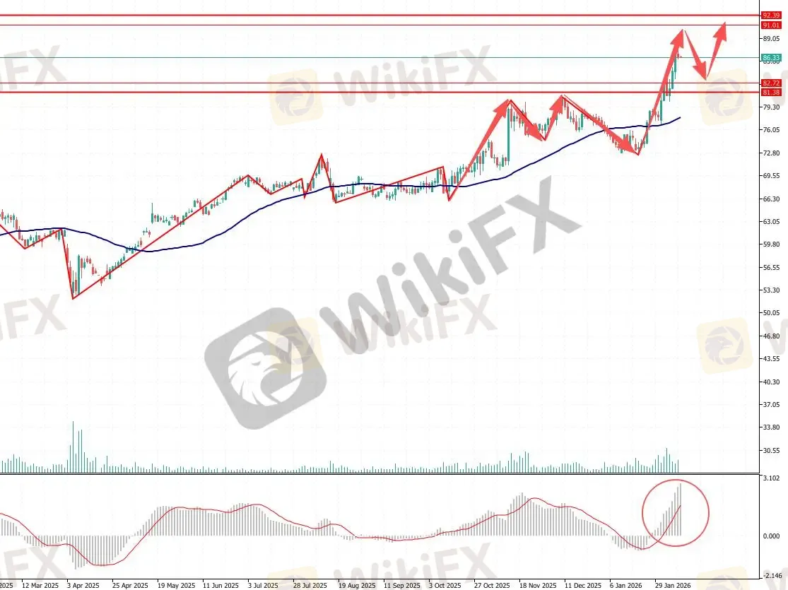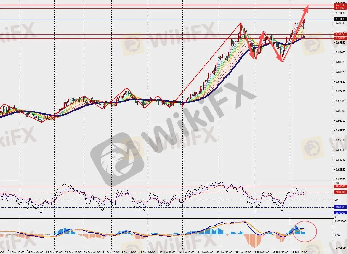 基本面:尽管澳元表面强势,但澳洲本土的经济信号已显露出一些疲态。最新公布的2月西太平洋消费者信心指数连续第三个月下滑,环比下降2.6%。调查中约80%的受访者认为未来利率还将上升,其中三分之一甚至预计可能再上调100个基点。这一方面反映出居民对融资成本的高度敏感,另一方面也说明加息后的心理冲击正在累积。