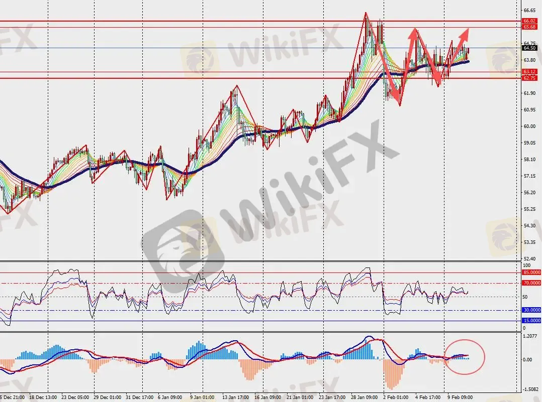 技术面:原油H4级别震荡反弹,并在48日多空分界线上方运行。此外,MACD双线和量能柱在零轴附近扩张。产油国联盟整体仍维持产量稳定,未释放大幅增产信号,这意味着供给端缺乏快速补充的能力。