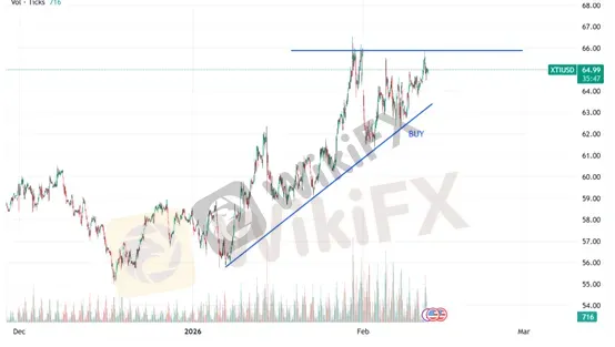 当日目标区间:逢低做多,注意66美元附近压力位,带好止损。