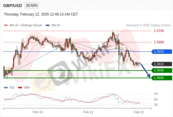 交易策略: 在 1.3655 之下,看跌,目标价位为 1.3605 ,然后为 1.3585。