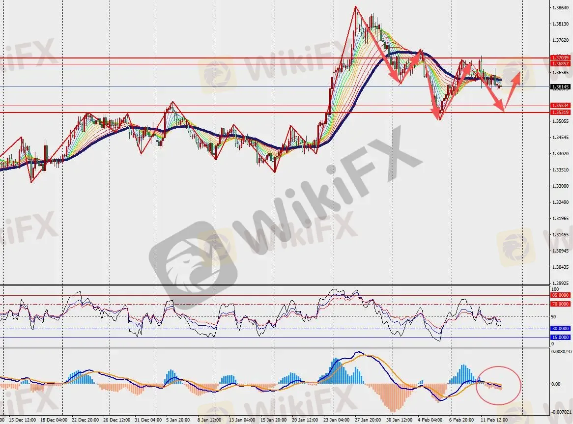 第一阻力位:1.3670 第一支撑位:1.3560