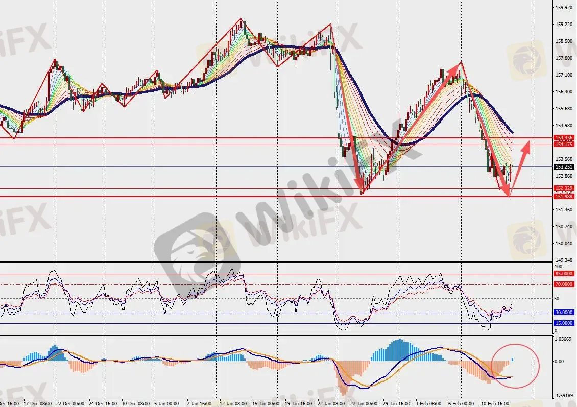 第一阻力位:154.00 第一支撑位:152.50