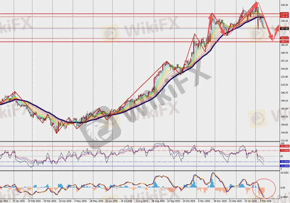 第一阻力位:322.00 第一支撑位:291.00