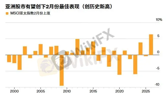 由于投资者纷纷涌入该地区为人工智能基础设施建设提供产品的公司,亚洲股市有望迎来有史以来最好的二月表现。